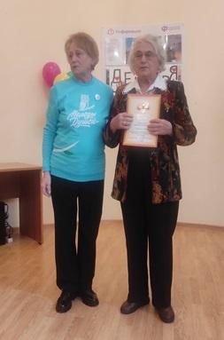 Поздравила «серебряных волонтеров» с праздником Валентина Шелкоплясова, председатель местного отделения Союза пенсионеров России, за неиссякаемую энергию и доброе сердце.